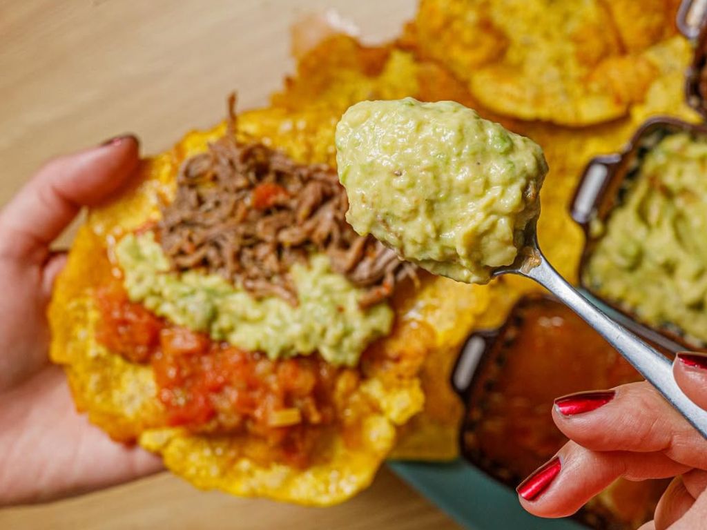 Machacado con un tenedor con tomate, cebolla, cilantro y un chorrito de limón, mantiene una textura generosa, ligeramente grumosa, muy lejos de las versiones demasiado suaves que se encuentran en otros lugares.