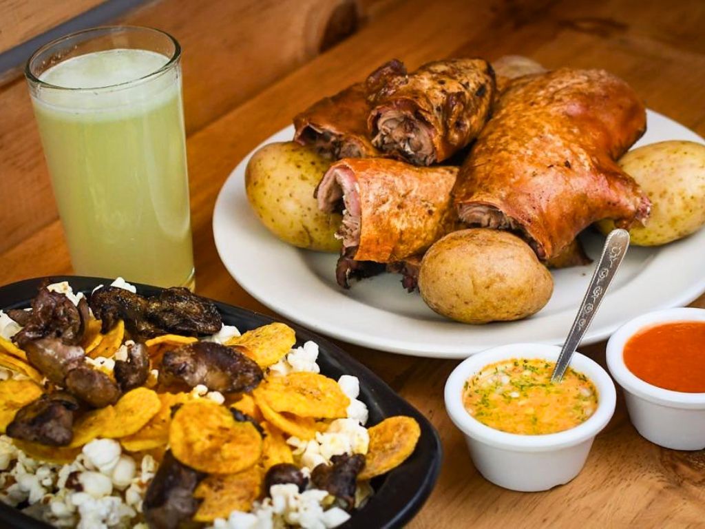 Nacido en Cundinamarca y Boyacá, este plato típico de Colombia es un asortimiento de carnes y tubérculos: chicharrón crocante, morcilla, chorizo, longaniza, costillas de cerdo, papa criolla, yuca y plátano maduro – todo está frito.