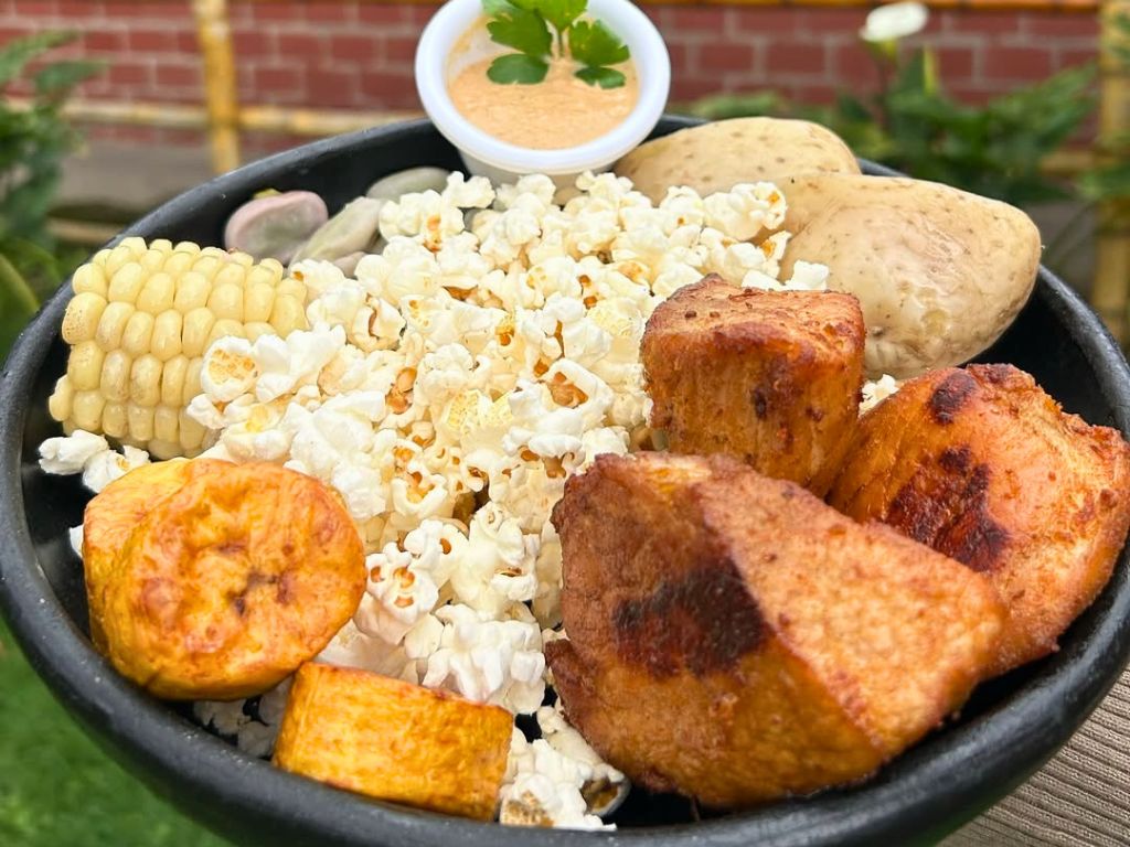 Un plato festivo y de compartir de la comida callejera de Nariño.